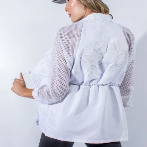This sports jacket is designed to pair with your favorite leggings or to wear casually with your jeans. It provides both comfort and style. The front is adorned with elegant bead embroidery, adding a touch of...